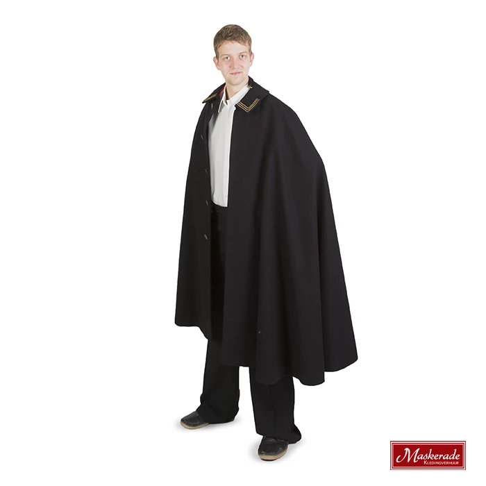 Dit kostuum van de jantjes bestaat uit een zwarte cape met witte blouse en zwarte broek